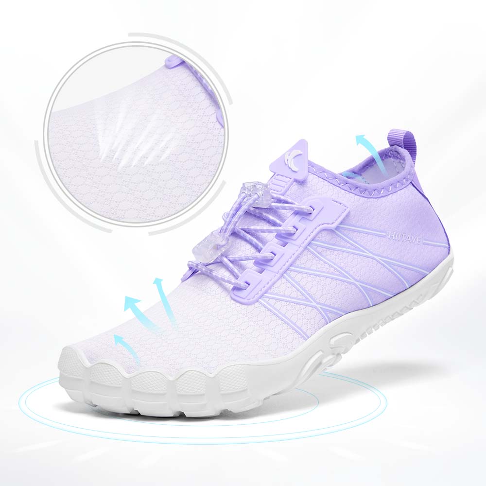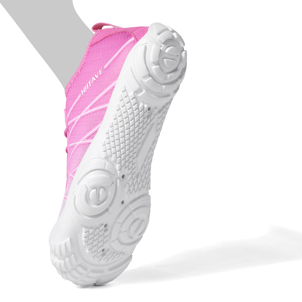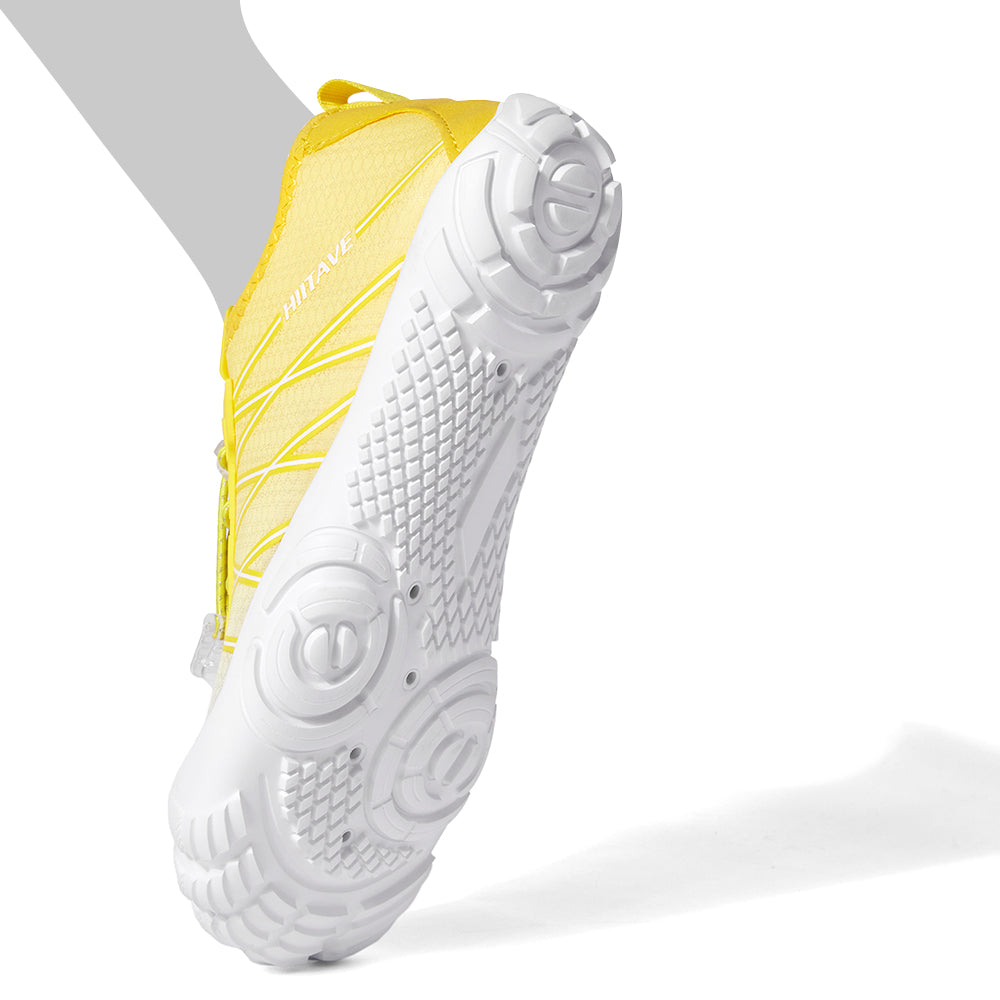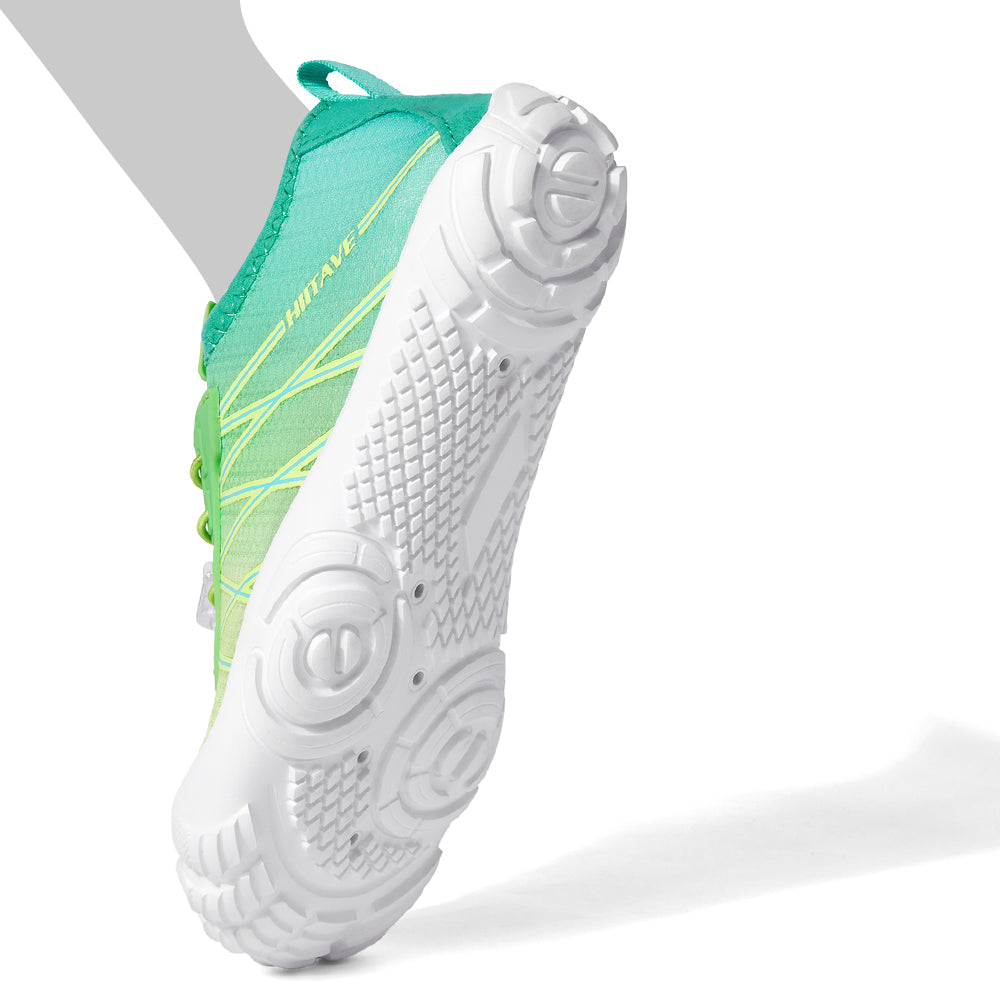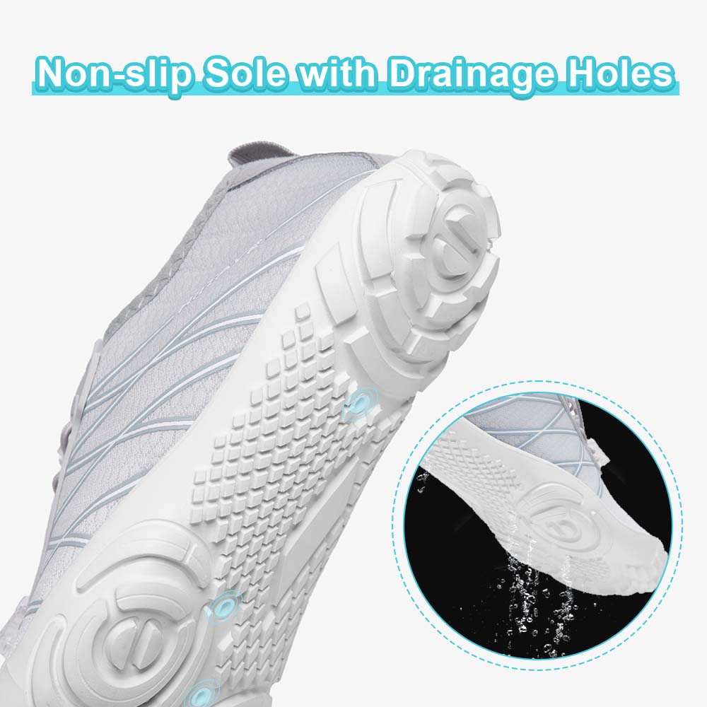 - Durable & Non-slip: Durable nonslip rubber outsole with a unique pattern, increases friction and track adhesion, prevents slips and falls, and protects your feet from sharp rocks and stones.5 holes on each bottom to ensure proper water flow out of them.