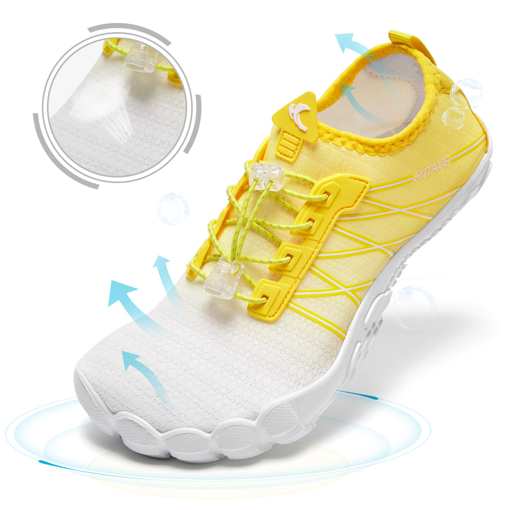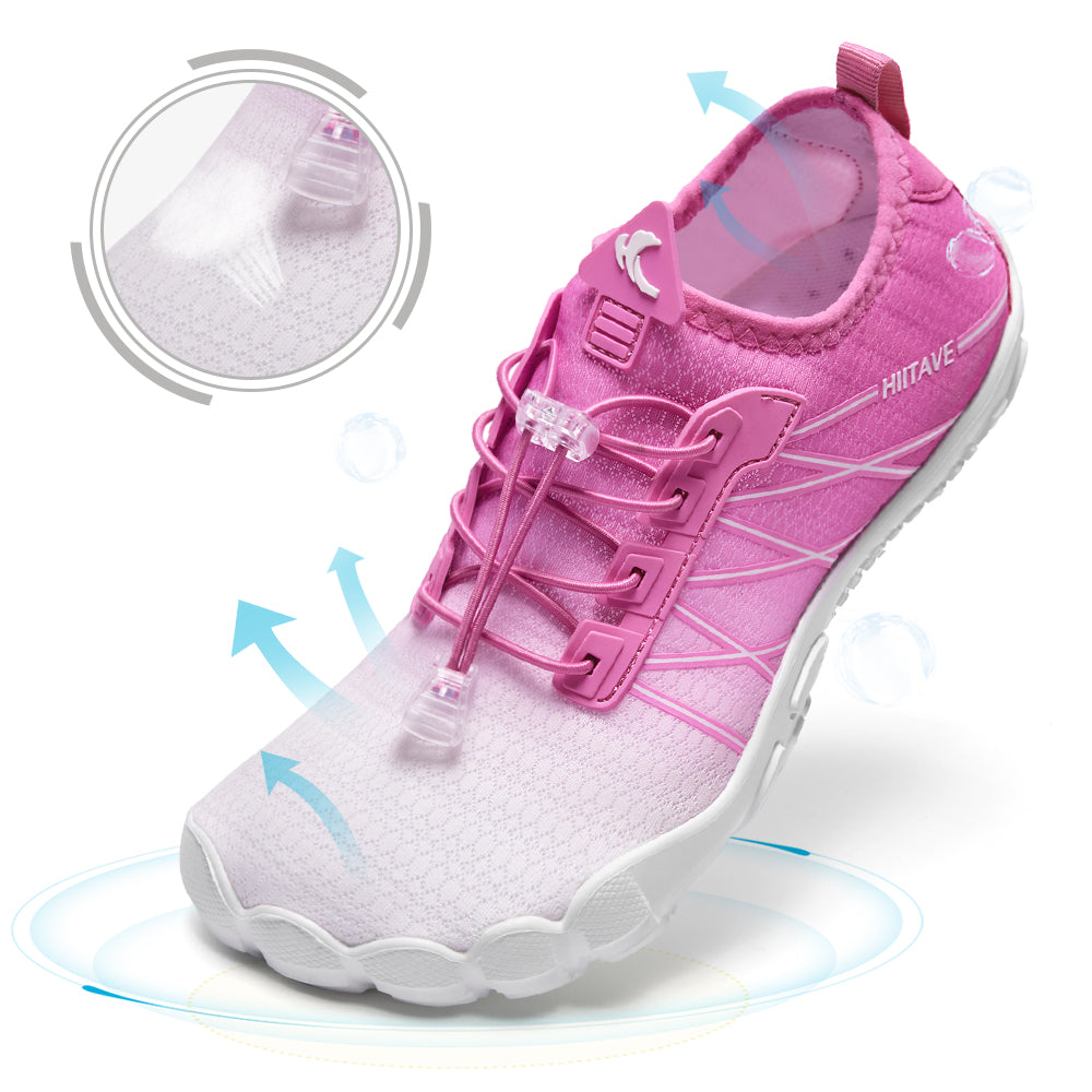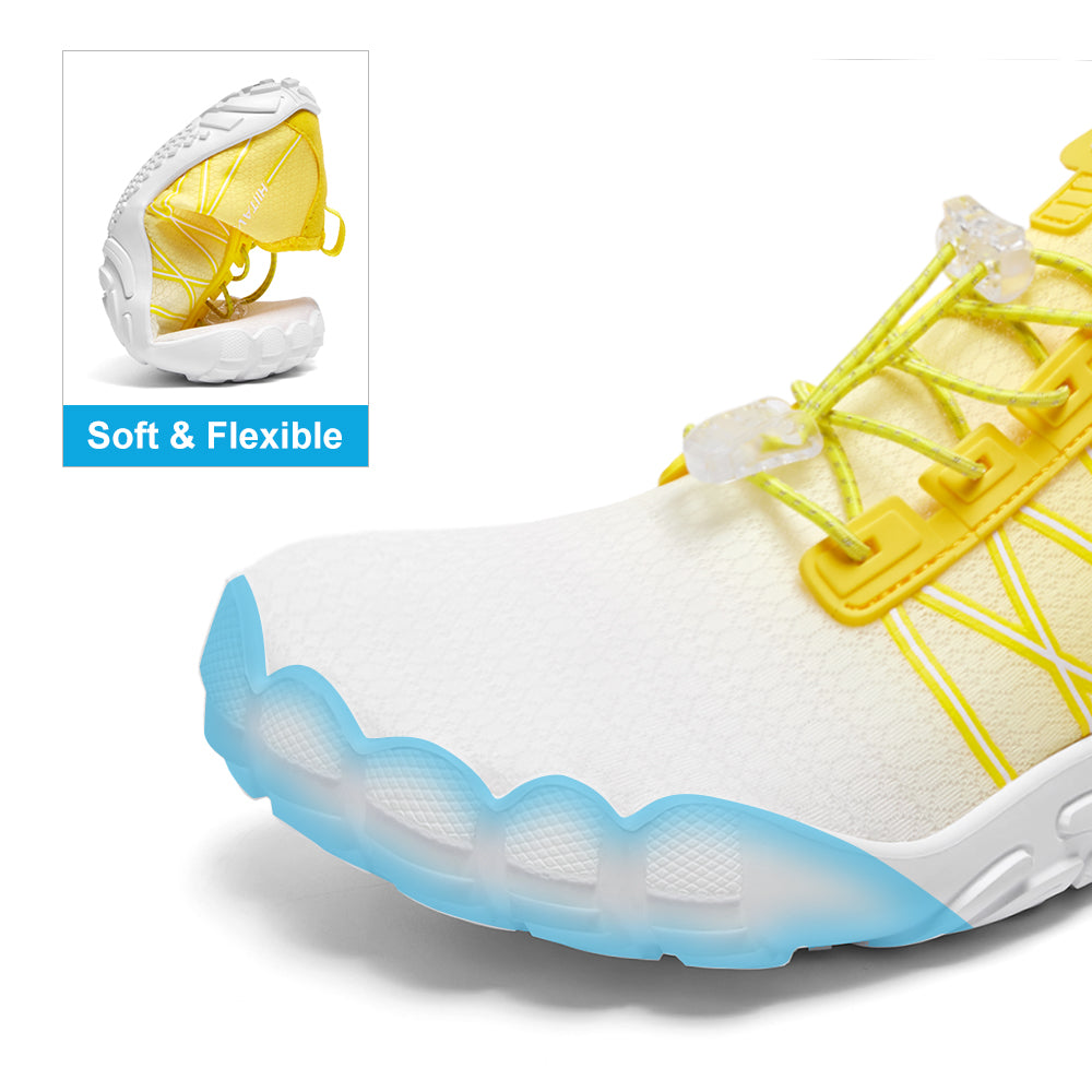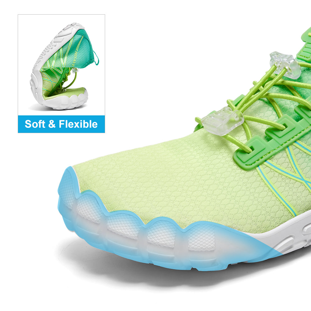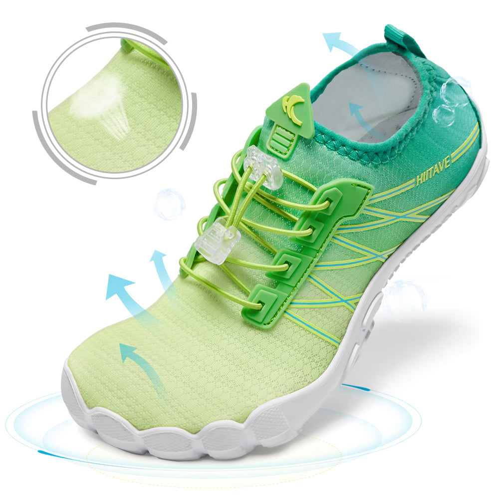 - Durable & Non-slip: Durable nonslip rubber outsole with a unique pattern, increases friction and track adhesion, prevents slips and falls, and protects your feet from sharp rocks and stones.5 holes on each bottom to ensure proper water flow out of them.
